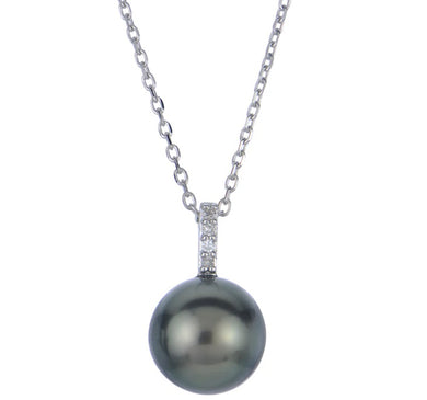 Ladies 14 Karat White Gold 8-9MM Tahitian CP & Diamond Necklace .20 pts 18"