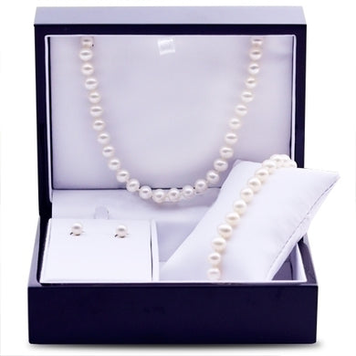 Ladies 14 Karat Yellow Gold Clasp 18" Freshwater Pearl Necklace , 7.5" Freshwater Pearl Bracelet , Freshwater Pearl Stud Earrings , 6-6.5Mm 3 Piece Set