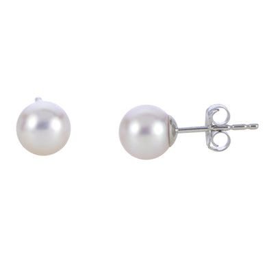 Ladies 14 Karat Yellow Gold 7MM Freshwater Pearl Stud Earrings