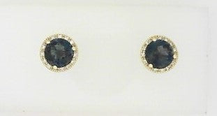 Ladies 14 Karat Yellow Gold Halo Studs With = 2.25Tw Round London Blue Topaz And = 0.08Tw Round G/H SI2 Diamonds