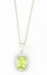 Ladies 14 Karat Yellow Gold Pendant With 0.07Tw Round H/I SI2 Diamonds And 2.00Tw Square Cushion Peridot 16" Chain