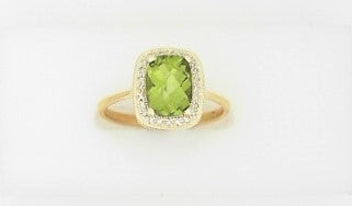Ladies 14 Karat Yellow Gold With 1.50Tw Retangular Cushion Peridot And 0.08Tw Round H/I SI2 Diamonds Size 6.5