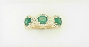 Ladies 14 Karat Yellow Gold Fashion Band With = 0.16Tw Round G/H SI2 Diamonds And = 0.97Tw Oval Emeralds Size 7