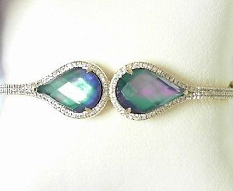 Ladies 14 Karat Yellow Gold With = 0.46Tw Round G/H SI2 Diamonds And =2 - Pear Shape Black Mother Of Pearls with Rock Crystals on Top