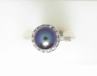 Ladies 14 Karat White Gold Fashion Ring With Round Pearl And 0.05Tw Round H/I Si2 Diamonds Size 6.5
