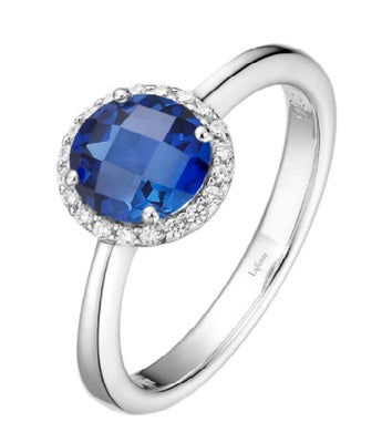 September Birthstone Ring Sterling Silver Rhodium Plated 1.05 TW with Simulated Stone and a Lassaire Stone Halo Size 7
