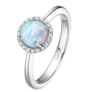 October Birthstone Ring Sterling Silver Rhodium Plated 1.05 TW with Simulated Stone and a Lassaire Stone Halo Size 7