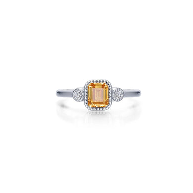 November Birthstone Ring Sterling Silver Rhodium Plated 1.05 TW with Simulated Stone and a Lassaire Stone Halo Size 7