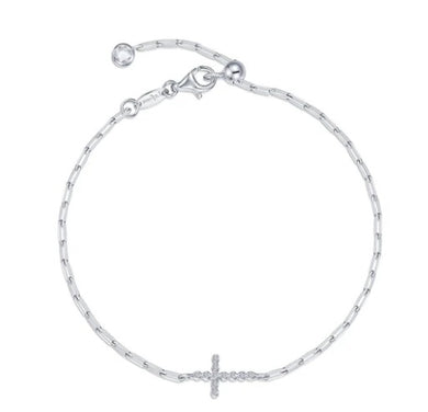 Sterling Silver Cross Chain Bracelet 6.8" With 0.11 CTW Lassaire Stones