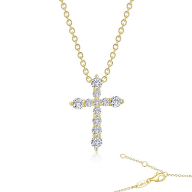 Sterling Silver Gold Plated Cross Pendant Necklace 0.67 CTW Lassaire Stones 18"