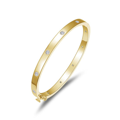 Sterling Silver Gold Plated High Polish Bangle Bracelet 1.10 CTW Lassaire Stones 7.25"