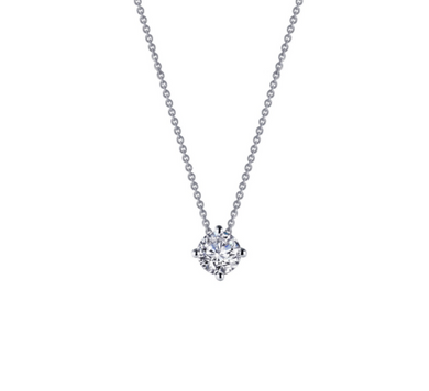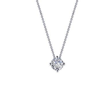 Sterling Silver Rhodium Plated 4 Prong Solitaire Necklace with 0..50 TCW Lassaire Stones 20" Adjustable Chain