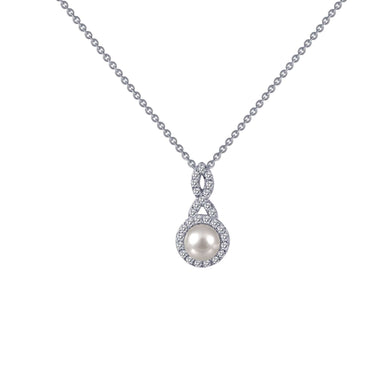 Sterling Silver Rhodium Plated Cultured Freshwater Pearl Necklace with 0.28 CTW Lassaire Stones 18"