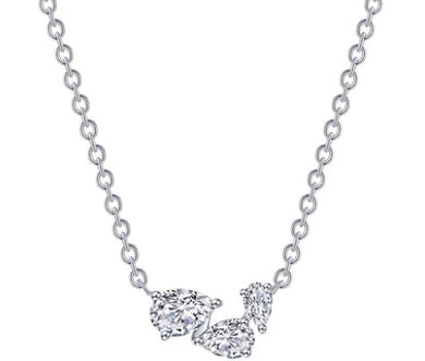 Sterling Silver Pear Shaped Three Stone Necklace 20" With 1.61 CTW Lassaire Stones
