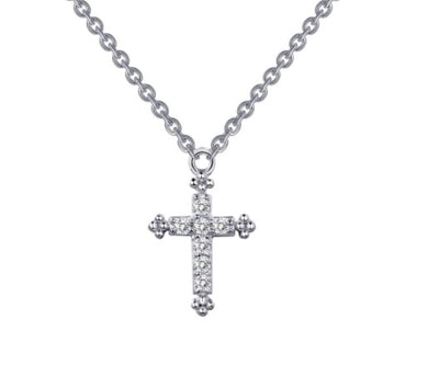 Sterling Silver Rhodium Plated 18" Cross Necklace 0.07 TW with Lassaire Stones