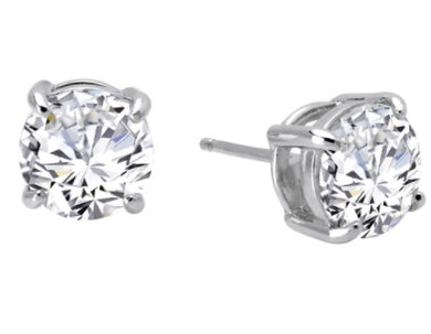 Sterling Silver Rhodium Plated 4 Prong Round Stud Earrings 4.00 TW with Lassaire Stones