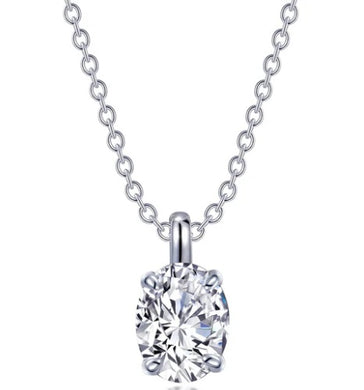 Sterling Silver Rhodium Plated 2.00 TCW Oval Lassaire Stone With 20" Chain Adjustable