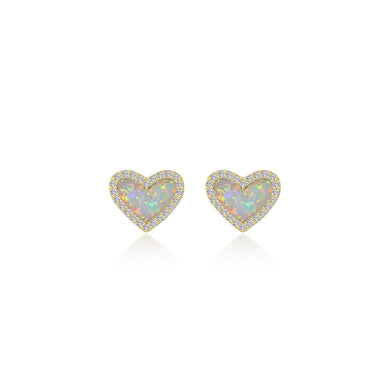 Sterling Silver Gold Plated Simulated Opal Halo Heart Stud Earrings 3.9 CTW w/ Lassaire Stones