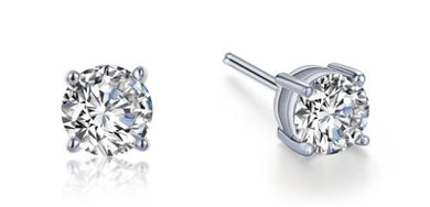 Sterling Silver Rhodium Plated 3 TCW Solitaire Stud Earrings with Lassaire Stones