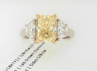 Ladies Platinum And 18 Karat Yellow Gold Diamond Engagement Ring With = 2.08Tw Radiant F VS2 Yellow Diamond And = 0.70Tw Half Moon E/F VS2 Diamonds Size 7 IGI Cert#67J928032411 Lab Grown