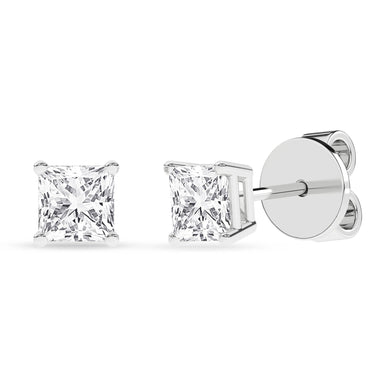 Ladies 14 Karat White Gold Diamond Studs With 1.00Tw Princess E/F VS2 Diamonds Lab Grown Diamonds IGI Certification # 15J478032501
