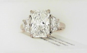 Ladies Platinum Diamond Solitaire Engagement Ring With = 3.04Tw Radiant F VS2 Diamond And = 0.84Tw Half Moon F VS2 Diamonds Size 7 ID# LGD241456-96 GIA Lab Grown =3.88 TCW