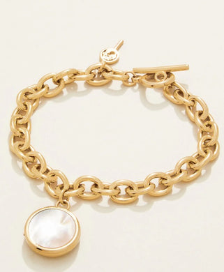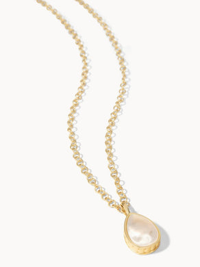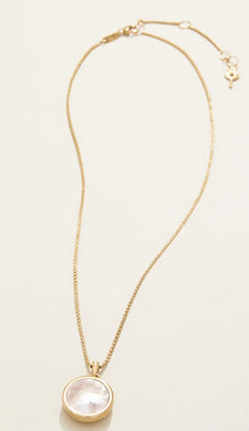 Mini Round Locket Necklace 18" Mother-of-Pearl