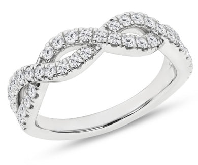 Ladies 14 Karat White Gold Diamond Criss- Cross Wedding Band With = .50Tw Round F VS1 Diamonds Lab Grown IGI Certification#42J507942407 Size 7