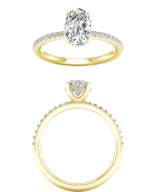 Ladies 14 Karat Yellow Gold Diamond Hidden Halo Engagement Ring With = 1.50Tw Oval F VS1 Diamond Center Stone w .25 pt E/F Color VS1 Rounds =1.75Tw Lab Grown IGI Certification #55J270252508 Size 7