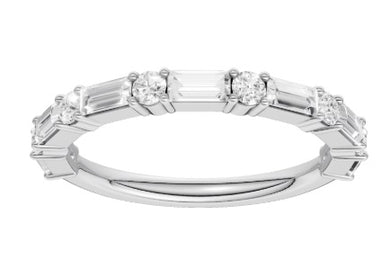 Ladies 14 Karat White Gold Diamond Wedding Band With = .50Tw Baugettes and Rounds F VS1 Diamonds Lab Grown Size 7