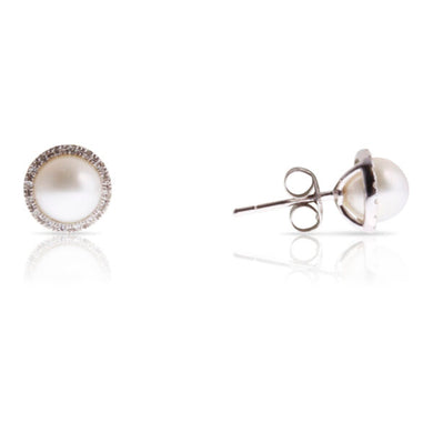Ladies 14 Karat White Gold Stud Freshwater Pearl 8MM Earrings With 0.07Tw Round H/I Si2 Diamonds