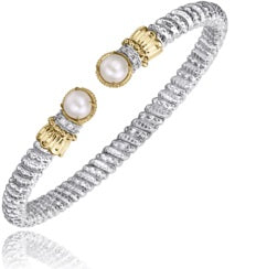 Metal: 14k Gold & Sterling Silver Diamond Weight: 0.10 White Pearl Open Band Bracelet 4MM