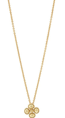 Ladies 14 Karat White Gold 4- Petal Diamond Flower With 0.02Tw Round H Si2 Diamonds With A 16-17-18" Adjustable Chain