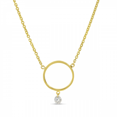 Ladies 14 Karat White Gold Diamond Circle Necklace With 0.09Tw Round H/I Si2 Diamonds with 18" Adjustable Chain