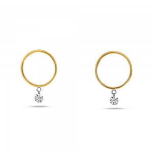 Ladies 14 Karat Yellow Gold & Sterling Silver 24MM Hoop Earrings 0.15tw Round H SI2 Diamonds