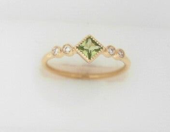 Ladies 14 Karat Yellow Gold Fashion Ring With 0.91Tw Emerald Cut Citrine And 0.06Tw Round G/H Si2 Diamonds Size 6.5