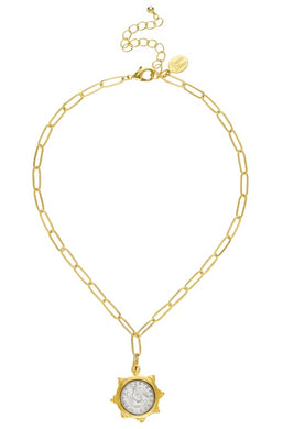 Metal: 14Karat Yellow Gold & Sterling Silver Coin Pendant 18"