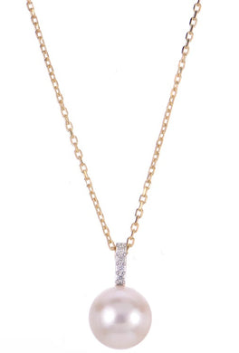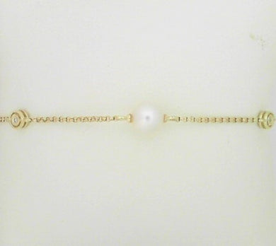 Ladies 14 Karat Yellow Gold Necklace With Fresh Water Pearl 7MM And 0.01Tw Round H/I Si2 Diamonds with 16" - 18" Adjustable Chain